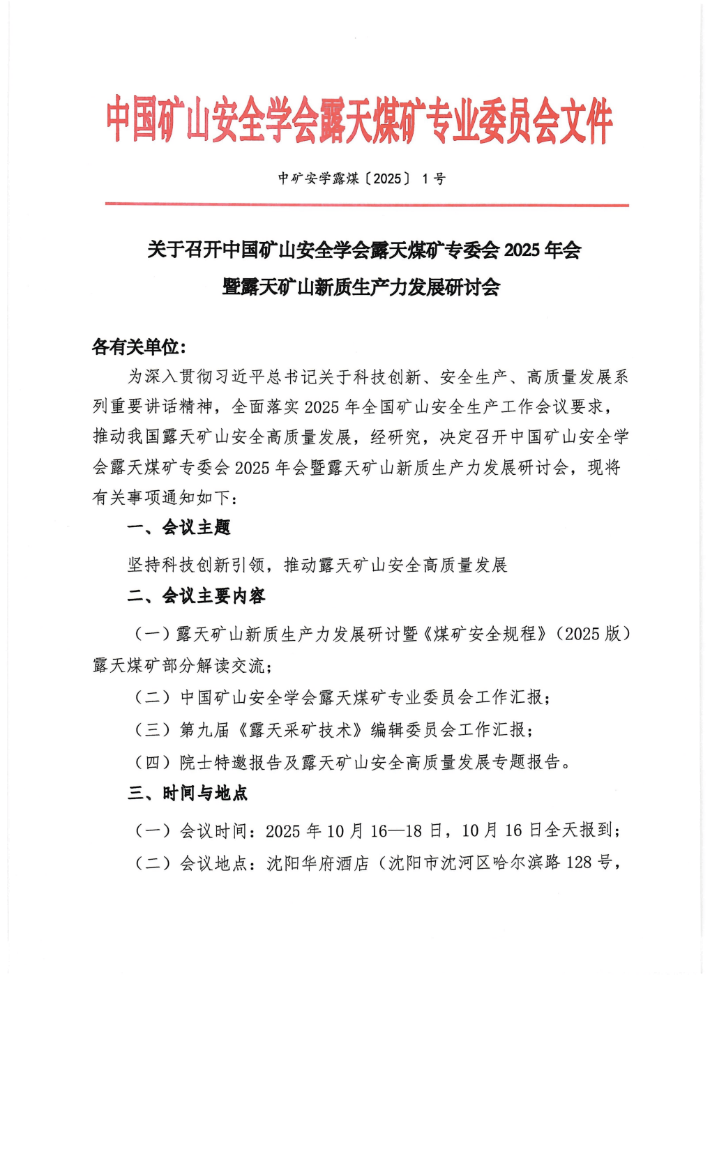 上一篇:关于召开露天矿山新质生产力发展研讨会暨《露天采矿技术》编辑委员会2025年会的通知